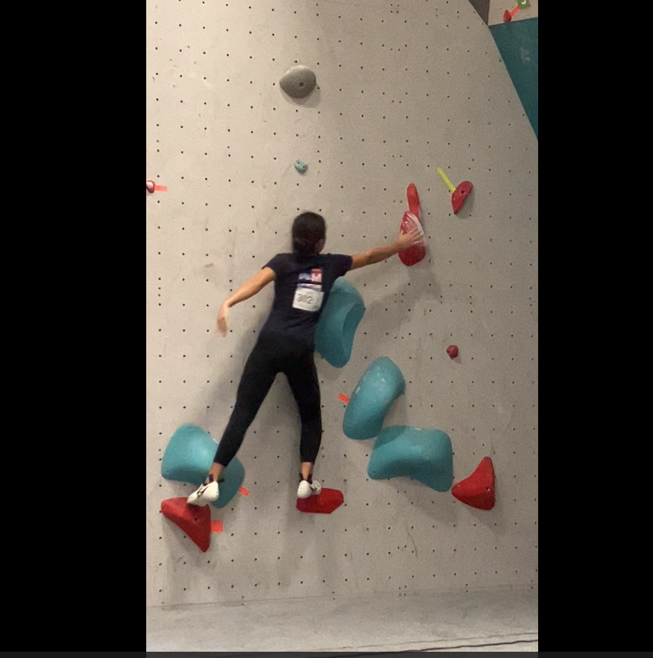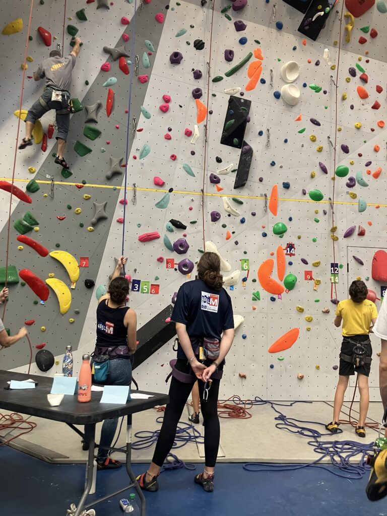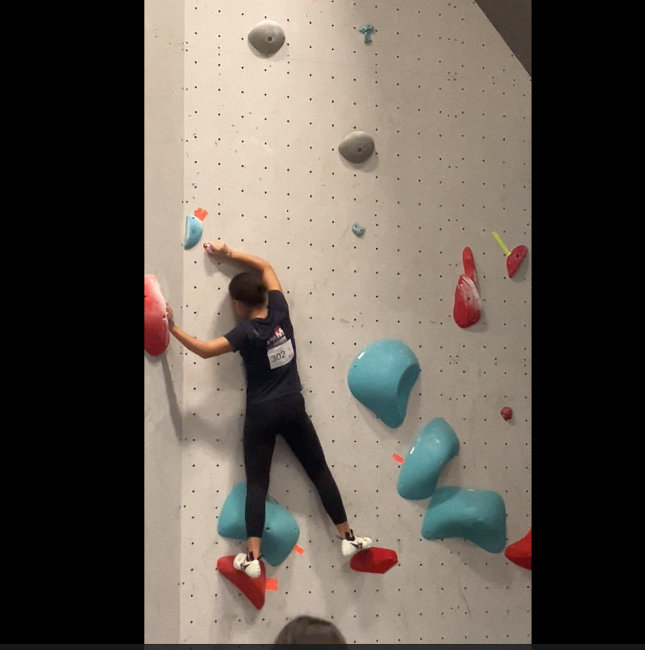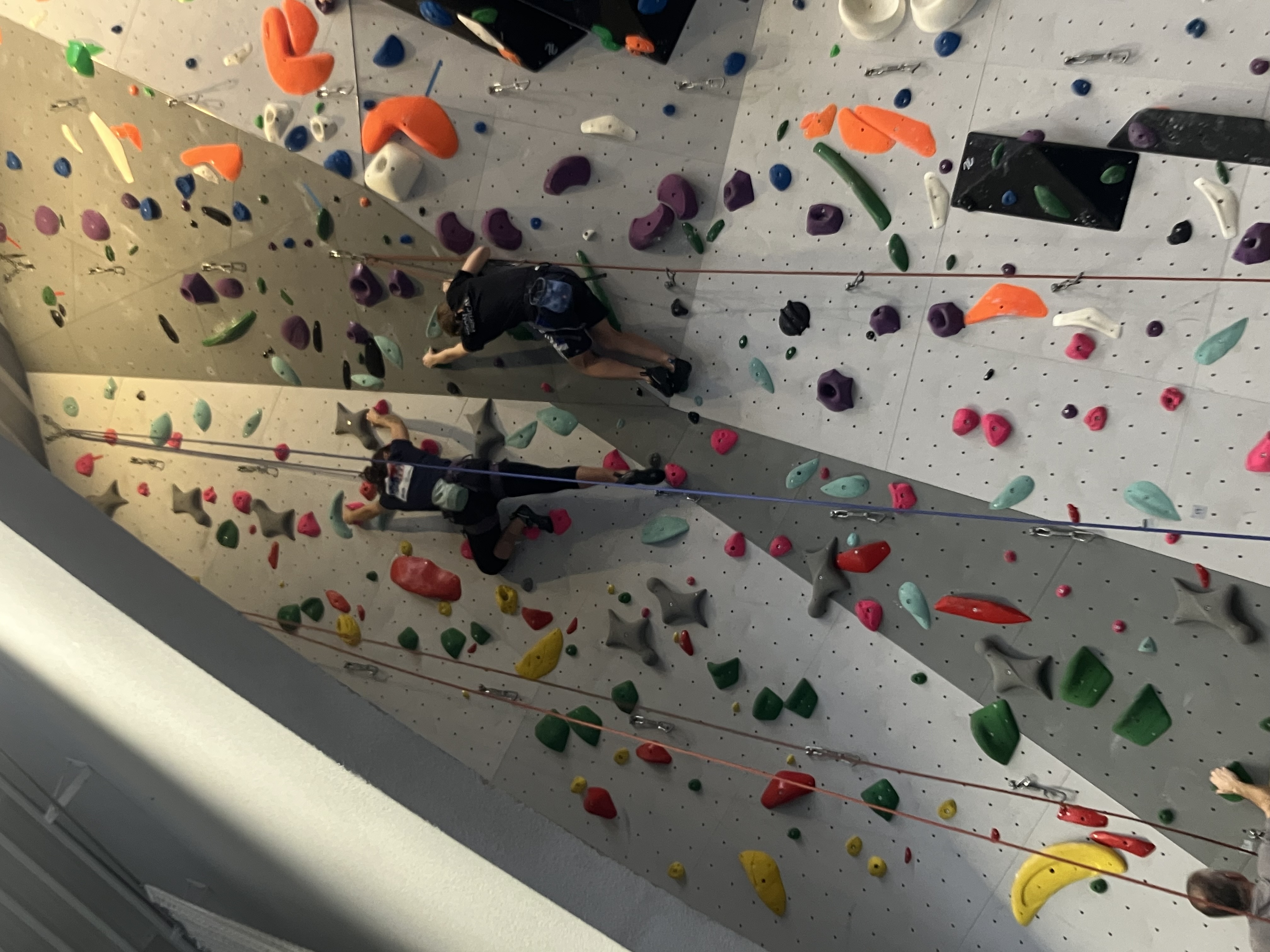 Pour la vitesse, on n’a pas totalement l’installation qu’il faut mais on à fait de notre mieux. Trois jeunes on participé en u13 et u15 sur la voie bleue u13 et la voie rouge u15 qui est un morceau si on veut déjà arriver en haut vu que c’est une partie de la voie adulte plus deux prises. On ira s’entrainer au mur de Croix Rousse pour la voie u13.